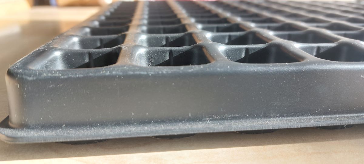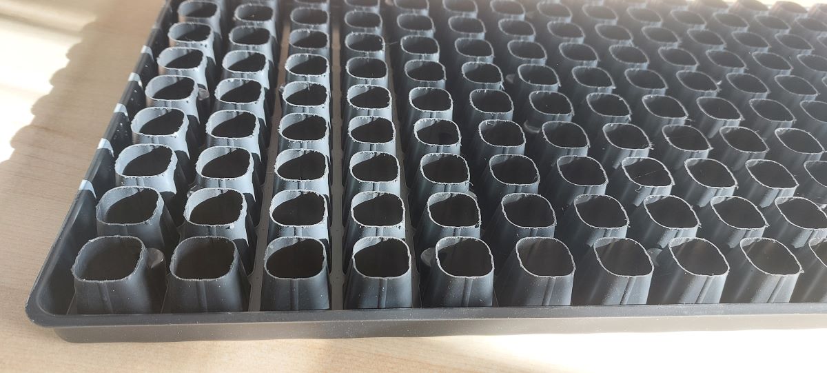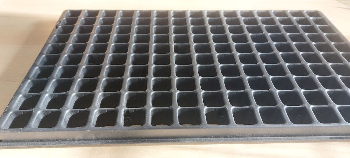 Deze stevige harde zaaitray met 150 vakken 3 cm hoog is een sample.